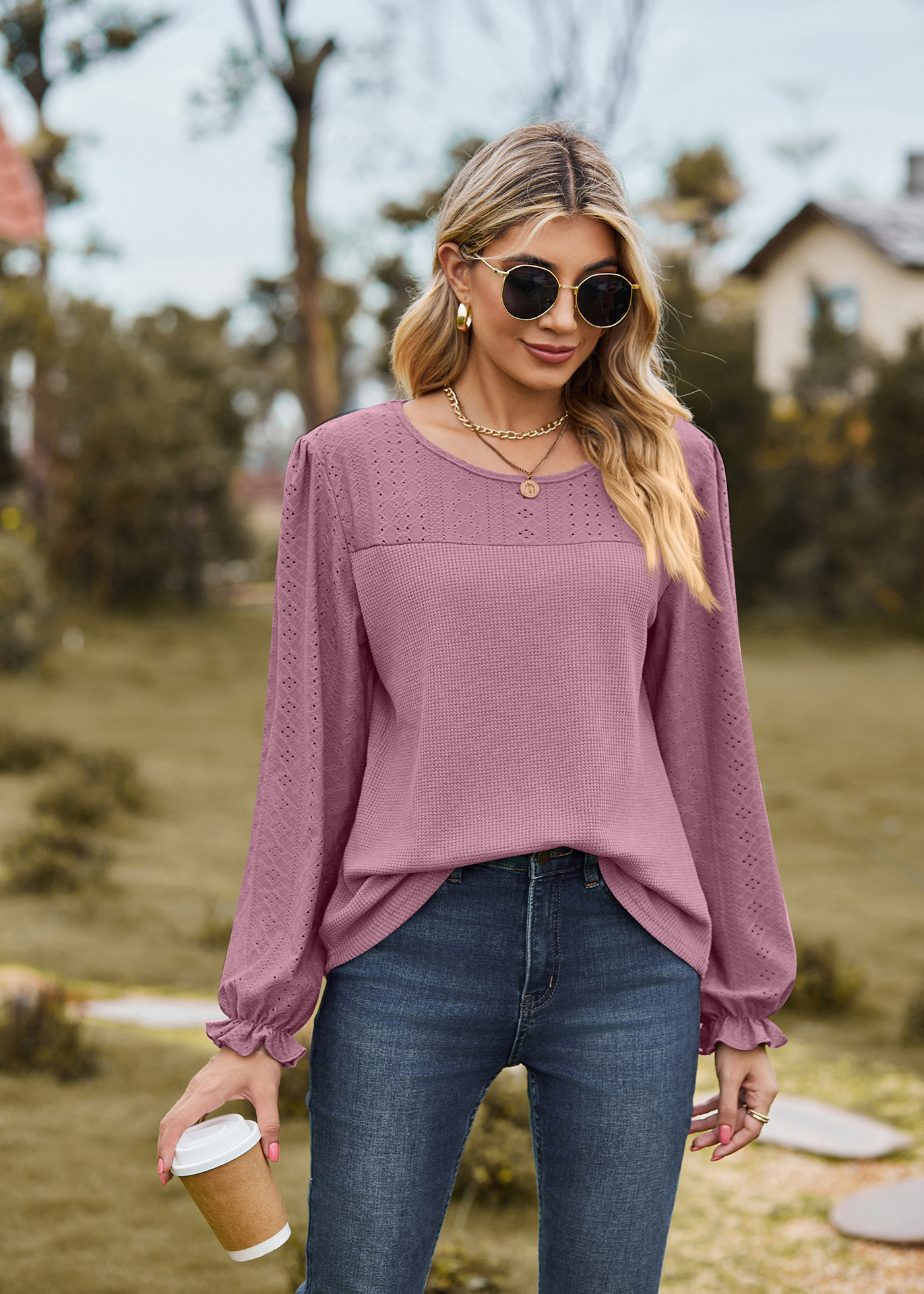 20Autumn Winter Patchwork round Neck Loose Long Sleeves Casual T shirt Top for Women